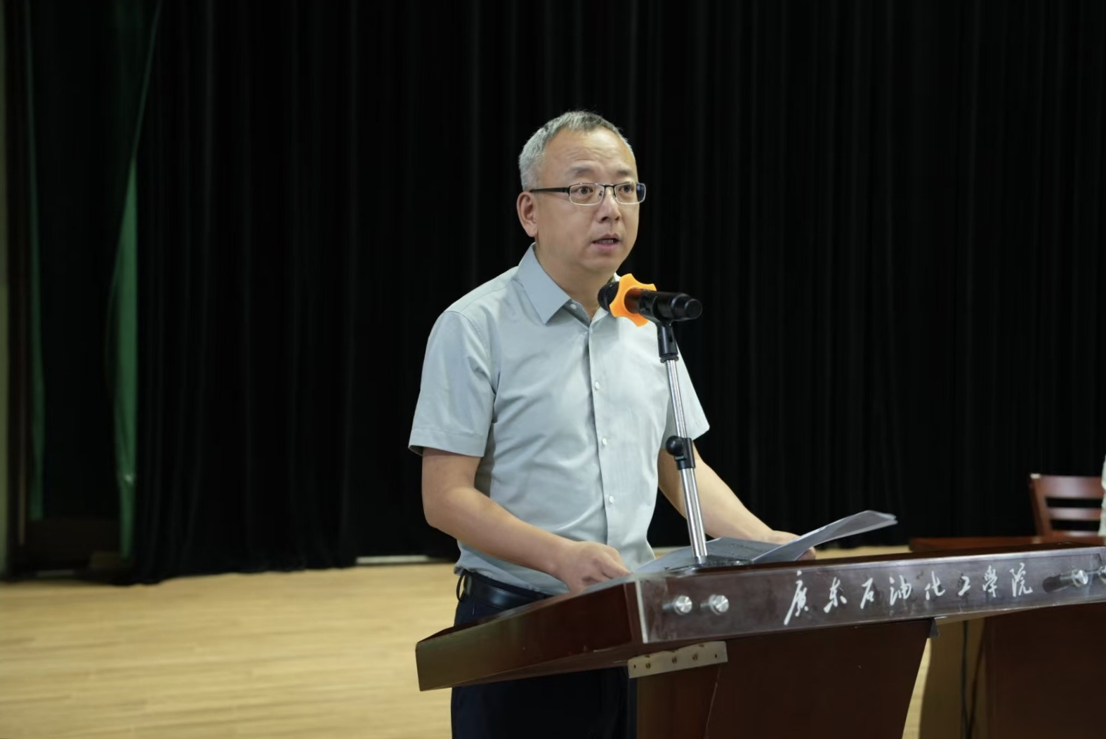 机电工程学院党委副书记、院长王新刚博士、教授以《秋风引航启新程机电逐梦谱华章》为题发表致辞,代表全院师生向历经军训与台风考验仍斗志昂扬的2025级新同学表示热烈欢迎,并从“学院实况、时代机遇、成长路径”三个维度展开分享。他寄语新生:一要“守正笃实,筑牢专业根基”,从每一堂课、每一次实验做起,让知识成为未来发展的“硬支撑”;二要“跨界融合,拓展成长边界”,主动拥抱“机电+”人工智能、智能制造等新领域,把自己从“单一技能型”升级为“复合型创新人才”;三要“知行合一,涵养实干品格”,积极投身企业实习、科研竞赛、志愿服务,用脚步丈量行业需求,用双手解决真实问题,让青春在贡献社会中绽放绚丽光彩。