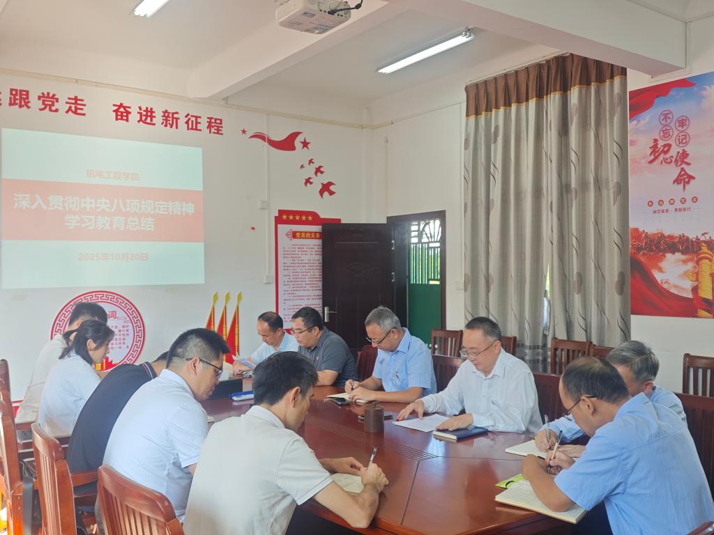 10月20日,机电工程学院召开深入贯彻中央八项规定精神学习教育总结会议。学院领导班子成员、党委委员及党支部书记参会,党委书记何建东主持会议。