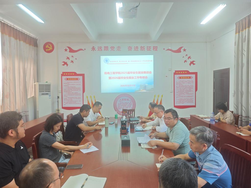 10月17日,机电工程学院在中专楼309会议室召开2025届毕业生就业推进会暨2026届毕业生就业工作专班会。学院领导班子成员、各专业(中心)主任、就业工作辅导员及毕业年级班主任参加会议。会议由副处级组织员杨晓坤主持。