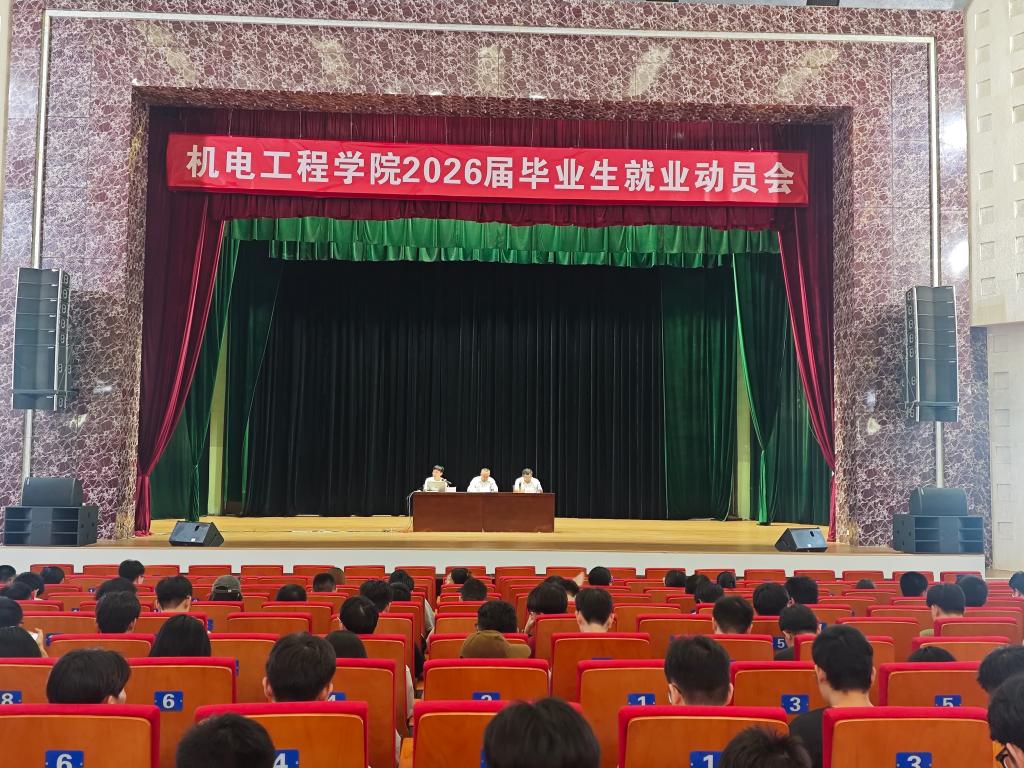 10月15日,机电工程学院在科技会堂组织召开2026届毕业生就业动员会。学院党委书记何建东,副处级组织员杨晓坤,毕业年级辅导员,以及2026届毕业生参加动员会。会议由何建东主持。