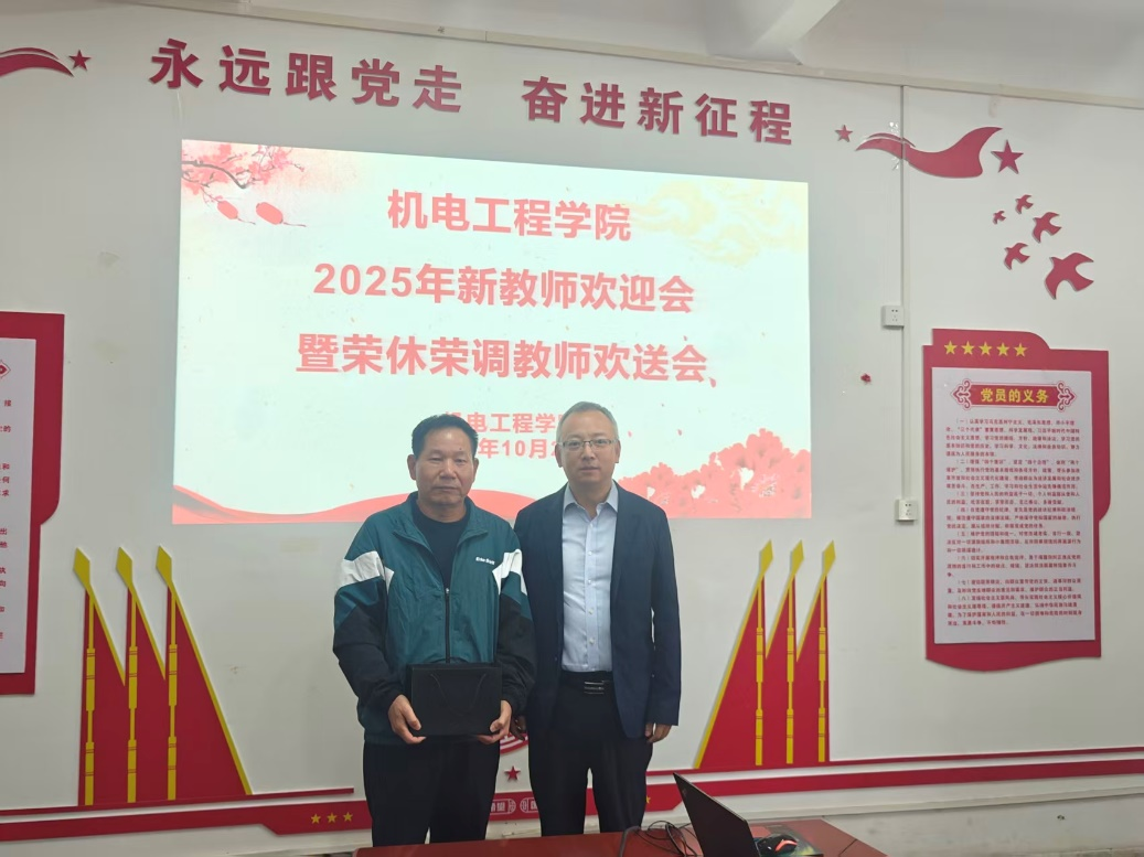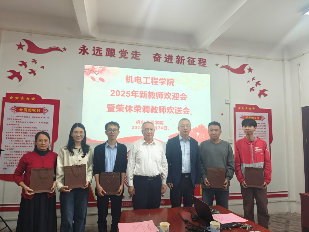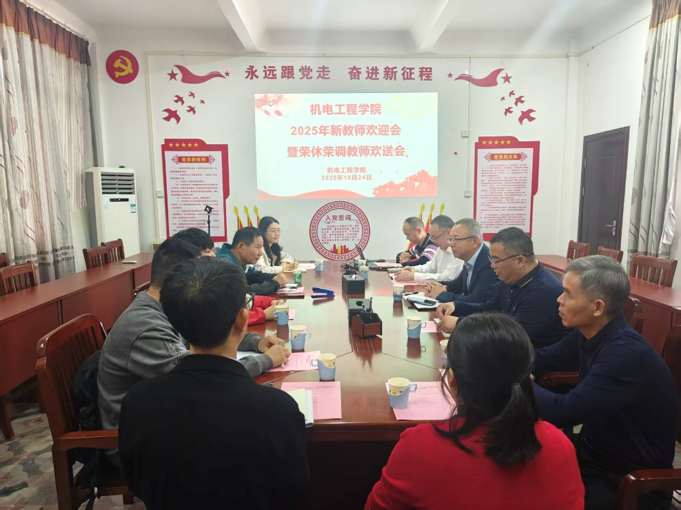 10月24日,机电工程学院在中专楼309会议室隆重举行“2025年新教师欢迎会暨荣休荣调教师欢送会”。学院领导、2025年新入职教师、光荣退休及荣调教师齐聚一堂,共同见证了这一温馨而富有意义的时刻。会议由学院院长王新刚主持。